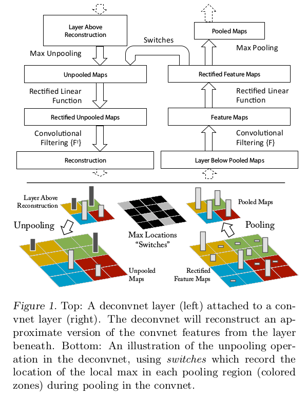 可视化技术是通过多层反卷积网络(Multi-Layered Deconvolutional Network, deconvnet)实现的,其目的是反向映射中间特征层激活到原始像素空间(map these activities back to the input pixel space)