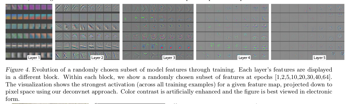 下图演示了各层最强激活点所表示的对应特征在训练过程中的变化