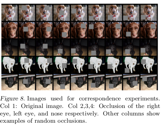 随机选择5张不同的狗脸图像,遮掩住脸部同一区域进行比对(比如都遮掩住右眼)