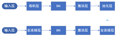 将BN层插入到线性操作(卷积操作或全连接操作)之后,激活函数之前,如下所示:
