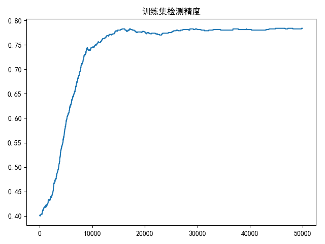 draw(loss_list, title='损失值') draw(accuracy_list, title='训练集检测精度') print('train accuracy: %.3f' % (max(accuracy_list)))