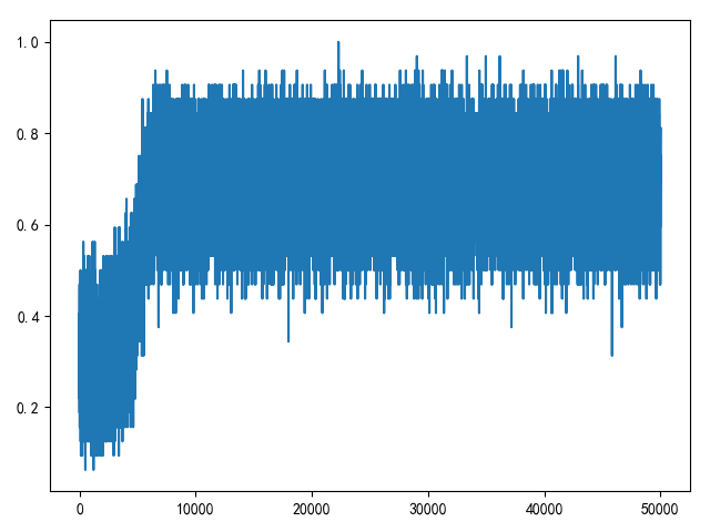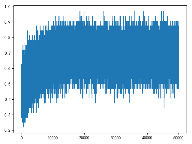# 计算精度 accuracy = compute_predict_accuracy(logistic_regression(w, train_data), train_label) accuracy_list.append(accuracy)