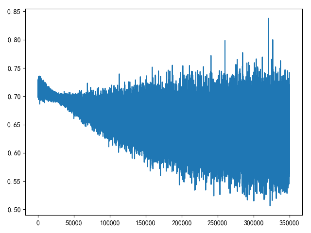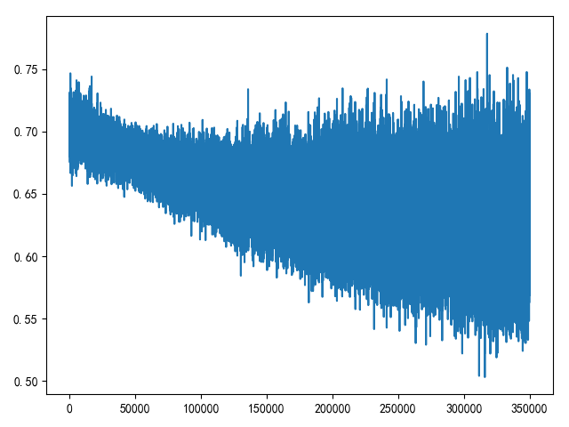 loss_list = [] accuracy_list = [] loss = 0 best_accuracy = 0 best_w = None for i in range(epoches): loss = 0 train_num = 0 for j in range(0, num, batch_size): loss += compute_loss(w, train_data[j:j + batch_size], train_label[j:j + batch_size], isBatch=True) train_num += 1 # 计算梯度 gradient = compute_gradient(w, train_data[j:j + batch_size], train_label[j:j + batch_size], isBatch=True) # 权重更新 tempW = w - lr * gradient w = tempW # 计算损失值 loss_list.append(loss / train_num)