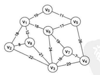假设 是连通网, 是 上最小生成树中边的集合。算法从 开始。重复执行下述操作:在所有 的边 中找一条代价最小的边 并入集合 ,同时 并入 ,直至 为止。此时 中必有 条边,则 为 的最小生成树
